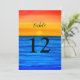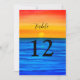 Ozeanwellen, Strand, Wassersport, Sonnenuntergang, Ziel-Tischnummern. Sie können es mit Ihren Zahlen personalisieren.