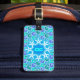 Das hübsche ozeanisch Muster dieses doppelseitigen Gepäckanhängers zeigt Wasserwellen in verschiedenen Blau- und aquamarinen Grüntönen. Es ist ein wunderschönes nautisches Design für jeden, der das Meer und den Strand . Durch die wirbelnden Wellen des Wassers will man zum Segeln. In der Mitte der Vorderseite bilden weiße Seesterne einen Kreis um Ihr individuelles Monogramm. Auf der Rückseite fügen Sie einfach Ihre Adresse in den weißen Raum zu personalisieren.