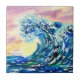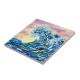 Aquarellbilder von großen blauen Ozeanwellen unter einem farbenfrohen Abend-Himmel in lila Farben auf einer Keramik Kachel.