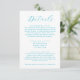 Mit dieser eleganten aqua blue Ocean Waves Hochzeitskarte stellen Sie sicher, dass Ihre Gäste alle wichtigen Informationen erhalten. Diese Karte ist ideal für Hochzeiten am Strand und beinhaltet Unterkünfte, Transportmittel und Hoteldetails, um die Reiseplanung zu erleichtern. Ein QR-Code auf der Rückseite Links zu Ihrer Hochzeitswebsite für weitere Informationen. Ideal für Feiern im Ritz-Carlton, auf der Insel Amelia; Casa Marina, Key West; The Cloister, Sea Island; The Ocean House, Rhode Island; Montage Laguna Beach; The Don CeSar, St. Pete Beach; und Kiawah Island Resort. Designed by Concertina Press.
