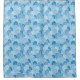 Ein farbenfroher blauer Duschvorhang mit verschiedenen Blautönen, in denen die Wellen für das Bad schwingen