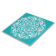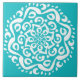 Dieses weiße Mandala liegt auf einem türkisfarbenen Hintergrund. Die Farben sind sehr beruhigend und friedlich. Teil der Kylgh Mandala Kollektion.