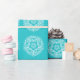 Dieses weiße Mandala liegt auf einem türkisfarbenen Hintergrund. Die Farben sind sehr beruhigend und friedlich. Teil der Sammlung Jarn Mandala.