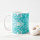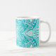 Dieses weiße Mandala liegt auf einem türkisfarbenen Hintergrund. Die Farben sind sehr beruhigend und friedlich. Teil der Howlsplann Mandala Kollektion.