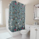 Oceania Fuchsia Grey Fishes on Blue Background Duschvorhang