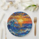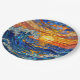 A paper plates with an illustration of a stained glass mosaic ocean waves and sunset illustration. These are perfect for a beach themed coastal birthday party.