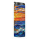 A tumbler with an illustration of a stained glass mosaic ocean waves and sunset illustration.