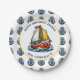Boy's birthday party in a nautical or maritime theme paper plates. Anchors and a red, yellow and blue sailboat.. Add child's name in the personalize area.