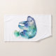 Vervollständigen Sie die ruhige Oase Ihres Badezimmers mit unserem Oceanic Whisper Manatee Custom Bath Handtuch Set. Dieses Set umfasst sowohl ein Handtuch als auch ein Badehandtuch in voller Größe, jedes mit einem ruhigen Aquarellmantel in friedlicher Blues und Grüntönen. Es ist der perfekte Weg, um eine kohäsive und sanfte Küsten-Eleganz in Ihren Raum zu bringen und dabei die weichen, bequemen Handtücher zu genießen.