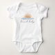 Dieser Baby-Stückjumper verfügt über einen Aquarell-Ozean-Sonnenuntergang gepaart mit einem niedlichen handgeschriebenen Schriftart mit den Worten "Beachbaby". Dieses Babycrawler-Outfit ist das ideale Geschenk für eine erwartende Mutter bei ihrer Babydusche oder ein niedliches tropisches Outfit für Ihre Kleine.