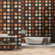 Ochre Rust Brown Peach Red Round Squares Muster Tapete