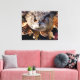 Diese Leinwand hat eine fliegende Eule auf sich abgebildet.