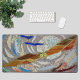Diese einzigartige Schreibtischmatte ist mit einem fliegenden Eule- und Mondmosaik in kräftigen Farben dekoriert. Original Mosaik © Michele Davies.