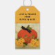 October Halloween wedding bridal shower thank you favor tags featuring bride and groom pumpkins. To personalize edit text to add name of bride and groom.