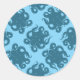 Octopus auf blauem Muster Runder Aufkleber
