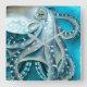 Octopus Blue Watercolor Detail Quadratische Wanduhr