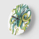 Octopus Grüne Wasserfarben Kunst Runde Wanduhr