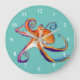 Octopus Meereswelt Aquarellkunst Große Wanduhr