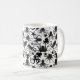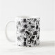 Dieses Bild ist ein nahtloses Muster mit schwarzen Silhouetten verschiedener Meereslebewesen auf weißem Hintergrund. Das Hauptmotiv ist der Oktopus, der in verschiedenen Größen und Positionen dargestellt ist. Manche Oktopoden werden aufgerollt, während andere ausgestreckt sind und sich ihre Tentakel nach außen ausbreiten. Das Muster umfasst auch Seesterne, die das Unterwasserthema ergänzen. Das Schwarz-Weiß-Farbschema sorgt für eine einfache, aber auffallende visuelle Wirkung, während das sich wiederholende Muster Bewegung und endloses Unterwasserleben suggeriert.