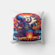 Octopus Playing Drums by Campfire on Sunset Kissen