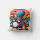 Octopus Playing Drums by Campfire on Sunset Kissen