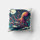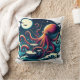 Ein Oktopus spielt energisch Trommeln inmitten von Wellen, die vom Mondlicht erhellt werden und eine lebendige Atmosphäre im Ozean schaffen.