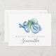 Ein Aquarell Geburtstag Gruß Postcard Senden Liebe und Wünsche aus der Ferne! Dieses einfache Design zeigt meine original handgemalte Aquarellblauer Oktopus mit "Happy Birthday" in einer modernen Typografie und den Namen des Empfängers in handgeschriebener Schriftzypografie. Verwenden Sie die Vorlagenfelder, um Ihre benutzerdefinierten Informationen und Ihren personalisierten Gruß hinzuzufügen. Eine schicke und dennoch raffinierte Wahl für den Geburtstag. Designed by Victoria. Weitere Octopus-Postkarten im Strandstil finden Sie unter www.zazzle.com/vginvites