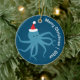 Ein lustiger Weihnachtsschmuck mit einem lächelnden Oktopus in einer Weihnachtsmannmütze auf blauem Hintergrund. Dieses niedliche Ornament hat die Worte "Frohe Weihnachten" und ein individualisierbares Jahr.
