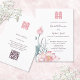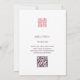 Diese blumengeschmückte Hochzeitseinladung zeigt ein Aquarellbild einer Lotus-Blume und ein doppeltes Glückssymbol in einem passenden rosa Farbton auf weißem Hintergrund. Auf der Rückseite ist ein scannbarer qr Code für Ihre Hochzeitswebsite.