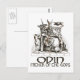 Odin ist ein Gott des Krieges und des Todes, aber auch der Gott der Poesie und Weisheit. Er hing neun Tage lang, durchbohrt von seinem eigenen Speer, auf dem Baum der Welt. Hier lernte er neun kraftvolle Lieder und achtzehn Läufe.