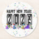 Odometer New Years Party 2026 Runder Pappuntersetzer