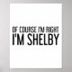 Of Course I'm Right I'm Shelby Name Funny Christma Poster