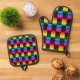 Ofen Mitt und Potholder mit Kariertem Regenbogen-M Ofenhandschuh & Topflappen-Set
