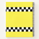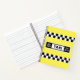 Ein lustiges Notizbuch mit den berüchtigten Farben und Motiven der ikonischen New Yorker gelben Taxis. Die Wörter TAXI und OFF DUTY werden auf der Vorderseite des Notebooks gedruckt, zusammen mit schwarz-weißen Schachbrettleisten. Auf der Rückseite des Buches sind die Streifen des Schachbretts gelb aufgedruckt.
