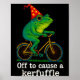 Off To Cause A Kerfuffle Funny Frog Wizard Bicycle Poster