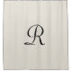 Dieser elegante Duschvorhang hat einen cremefarbenen Hintergrund in einem Imitat, das mit einem Krüppelmuster versehen ist. Monogramm ist schwarz. Eine schlichte und dennoch elegante Wohngestaltung für eine Hochzeit oder eine Hauswärmung. Alle Rechte vorbehalten © 2015 Alan & Marcia Socolik.
