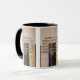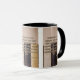 Diese zweifarbige Tasse zeigt einen aubetten-Schriftart-Architekten mit hellschwarzer Kontur, der den KJV-Bibelschriftenvers "Offenbarung 1:3" über ein Set von Bibeln mit verschiedenen Farben im Hintergrund in diesem biblisch-konfessionsbasierten Thema zeigt. Dieser Vers bezieht sich auf das Buch der Offenbarung 1. Kapitel, das den 3. Vers in diesem Bibel Zitat Thema aus der King James Bibel zeigt. Die Felgen & Griffe sind in passenden Farbtönen in Mikrowellen- und Geschirrspüler-Keramik in 11 Unze- oder 15 Unzen-Größen erhältlich.