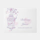 Niedliches Vogelpaar in Line-Art Grafik gezeichnet von einem offenen Vogelkäfig, der an einem blühenden Frühlingsbaum mit Herz hängt. Modernes, schicke Hochzeitsdesign im Vogelkäfig - romantisches Hochzeitsfest-Set. Hübsche Pastelltöne lila und weich rosa. Bearbeiten Sie diese Tür mit Ihrem eigenen Namen und Ihren eigenen Hochzeitsterminen. Ideal, wenn Sie einen Hochzeitsempfang in Ihrer Zuhause haben oder als Geschenk an die frisch gezapften Weds. Einzigartiges zeichn und Design von Sarah Trett.