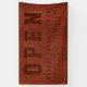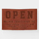 Dieses einzigartige und auffällige braune Imitat veganes Leder Open Business Banner mit Geschäftsnamen und Betriebsstunden. Design erstellt mit 3 Schichten fett Typografie in verschiedenen Tönen, um den geprägten Look zu simulieren. Ein stilvolles und berufliches Zeichen für Ihr Business oder Ihre Schule.