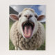 Schafe mit Mundweite offen, die Zähne zeigen.