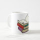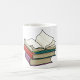 Dieses Design ist ein offenes Buch. Es gibt drei Bücher mit dem Buch oben offen. Dieses offene Buchdesign sieht auf dieser Tasse großartig aus