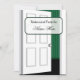 Bereiten Sie zu nahem die Tür auf einem Teil Ihres Lebens vor und öffnen Sie die Tür zu einem neuen Abenteuer? Ist hier eine Ruhestands-Party Einladung, die eine teilweise offene weiße Tür kennzeichnet. Sie öffnet sich in einen Raum mit grünen gestreiften Wänden und einem schwarzen Boden. Sie können nicht sehen, was im Raum ist, aber es ist eine offene Tür zu einem neuen Abenteuer.