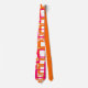 Diese Krawatte hat ein modernes Design von offenen Rechtecken in rosa über offenen Rechtecken in orange.