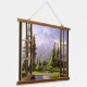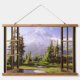 Schöne Aquarelldarstellung des atemberaubenden Rainiers, von Ihrem offenen "Fenster" in Ihrer Waldhütte.