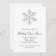 Eine eisige Schneeflocke mit illustrierten Kristallen, Schmuckstücken und Glitzer prägt dieses elegante weiße Holiday Open House Einladung und verleiht ihm ein festliches und funkelnd Aussehen.