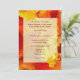 Herbstliche Hochzeitsfeier Einladungen. Hellorange und gelbe Blätter grenzen einen Hintergrund von Herbstlauben mit dunkelrotem Text im kalligraphischen Schriftart. Diese 12x18 Einladung lädt die Eltern zur "Ehe ihrer Tochter" ein.