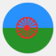 Offizielle Romanische Sinti und Roma-Reisende-Fahne von grün und blau, die Erde und Himmel mit einem roten Wagenrad repräsentiert, das Reisen darstellt. Personalisieren Sie dieses Design, indem Sie den Text löschen oder ändern.