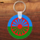 Die grüne und blaue offizielle Romani Roma Sinti und Roma Fahne der vielen Sinti und Roma und Reisenden wird durch das Menü nach Maß individuell gestaltet. Die Fahne repräsentiert das Grün der Erde und das Blau des Himmels mit einem traditionellen Vardo-Wagenrad der Sinti und Roma, das das Reisen darstellt.