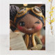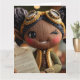 Ein spielerischer und lustiger Ton Weihnachtsbild, eine gestrickte zwinkernde Steampunk-Puppe. Leere Innenkarte