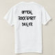 Ein sehr guter T - Shirt mit einem lustigen Satz auf der Rückseite "Offcial Felsen-Geist-Händler"